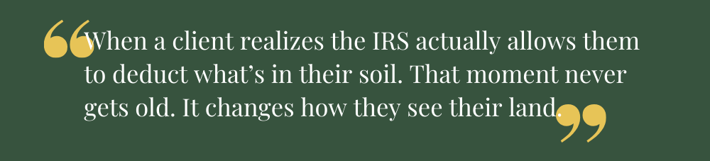We help landowners turn dirt into deductions and document the value already in their soil before it’s gone.